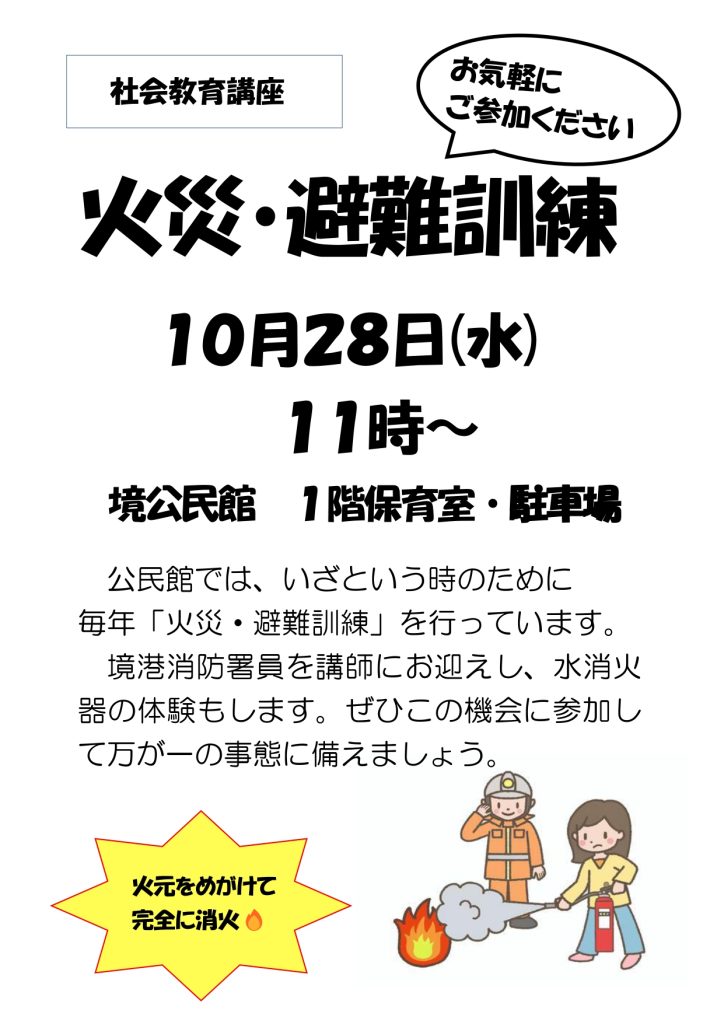 なお、10月20日(月)は、公民館まつりの振替として、公民館は休館となります。公民館を使用されるサークルは、10月17日(金)午後5時までに鍵を取りにお越しください。